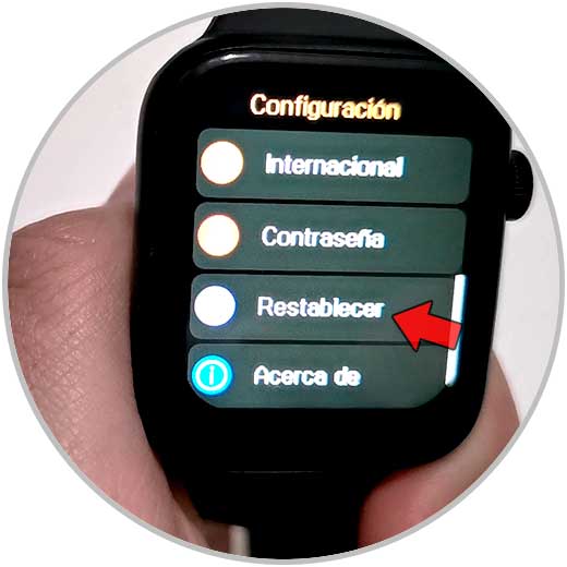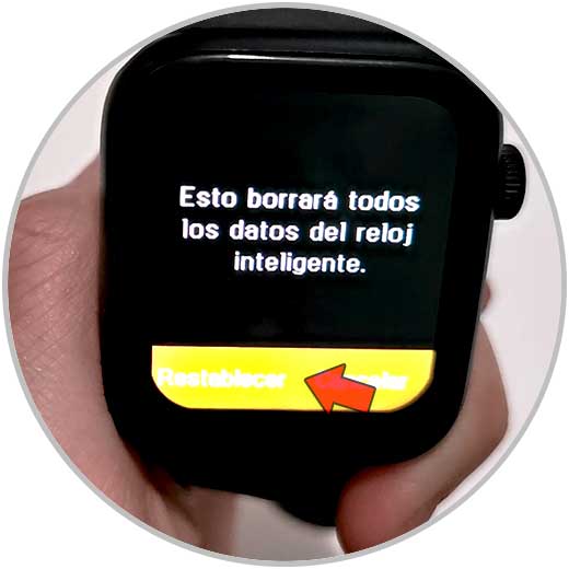 Confirma en "Restablecer" y el reloj se restablecerá de fábrica. Después de esto deberá ser vinculado de nuevo a la app.