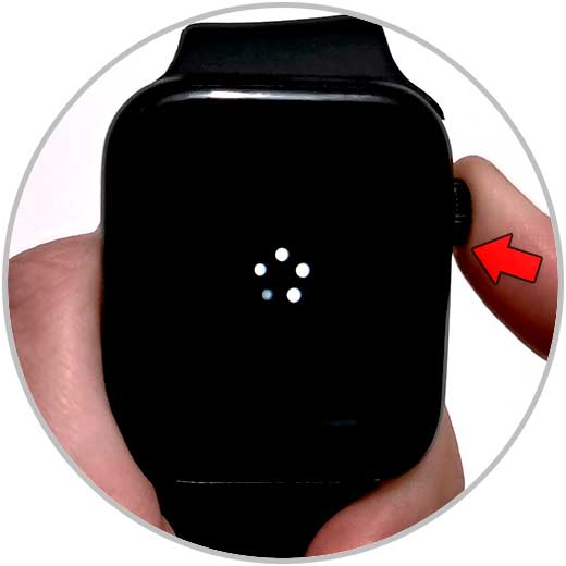 Verás que el reloj se apaga y después se vuelve a encender, en el logo podrás soltar el botón