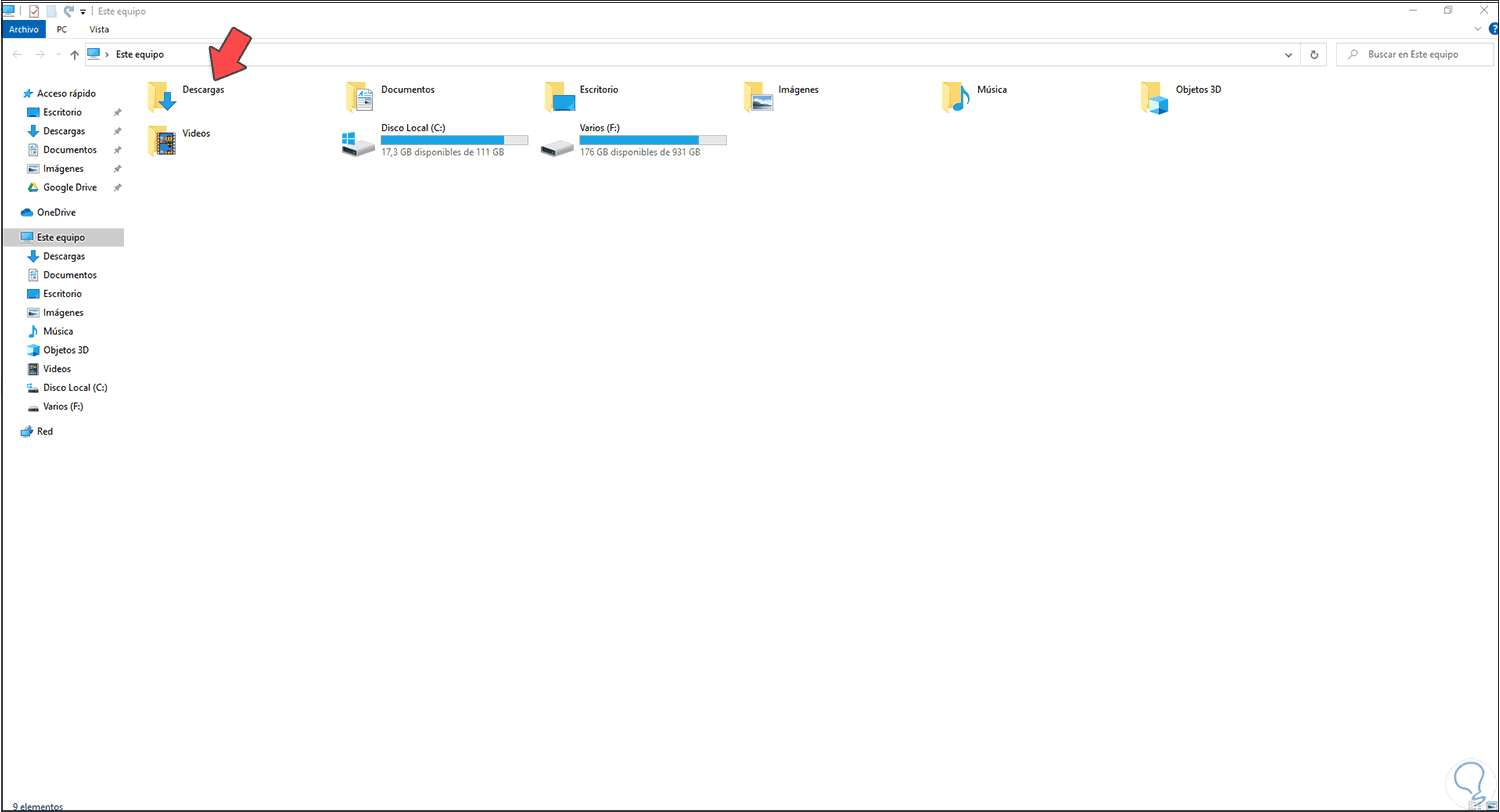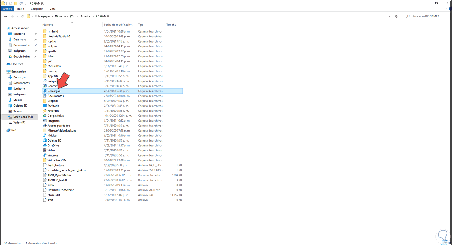 2. Abrir carpeta descargas desde Usuario Windows 10