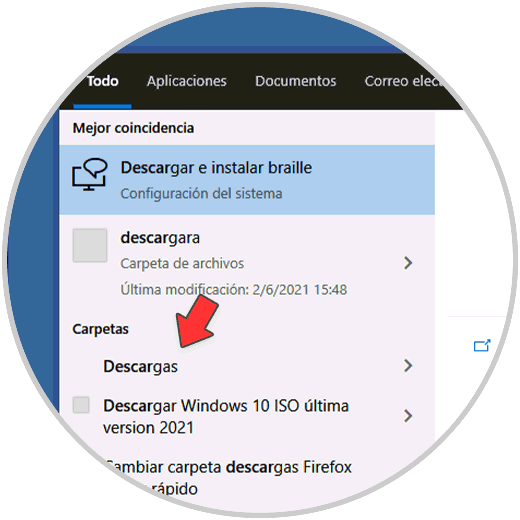 3. Abrir carpeta descargas desde Buscador Windows 10