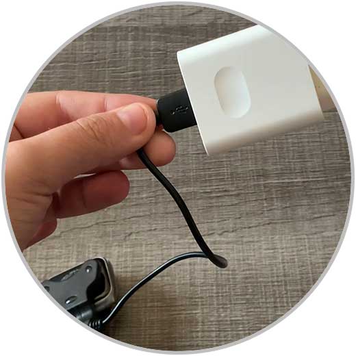 Ahora tenemos que abrir la pinza del cargador y hacer coincidir los conectores para que queden unidos.