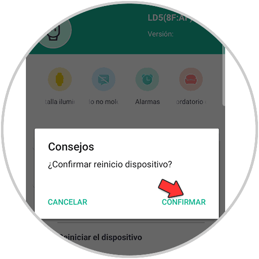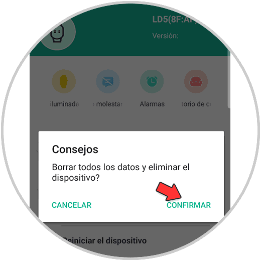 Finalmente tendrás que confirmar esta acción el teléfono para el reloj comience a reiniciarse.