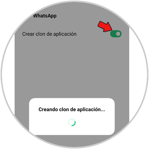 Activa la pestaña para duplicar la app y verás el proceso de duplicado en la pantalla.
