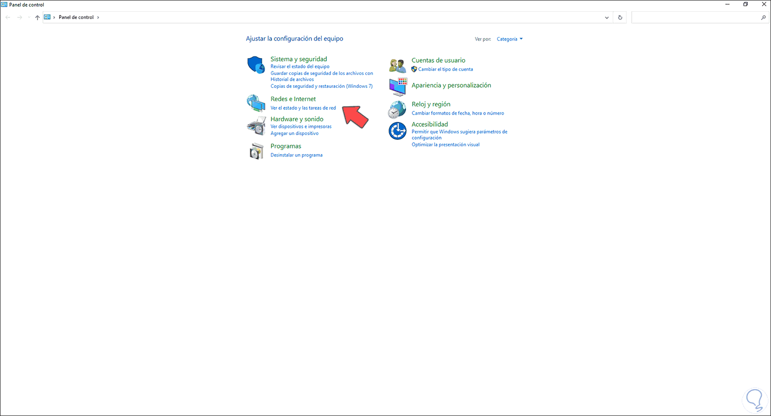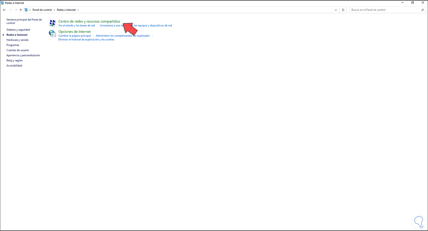 Damos clic en "Redes e Internet” para ver las siguientes opciones: