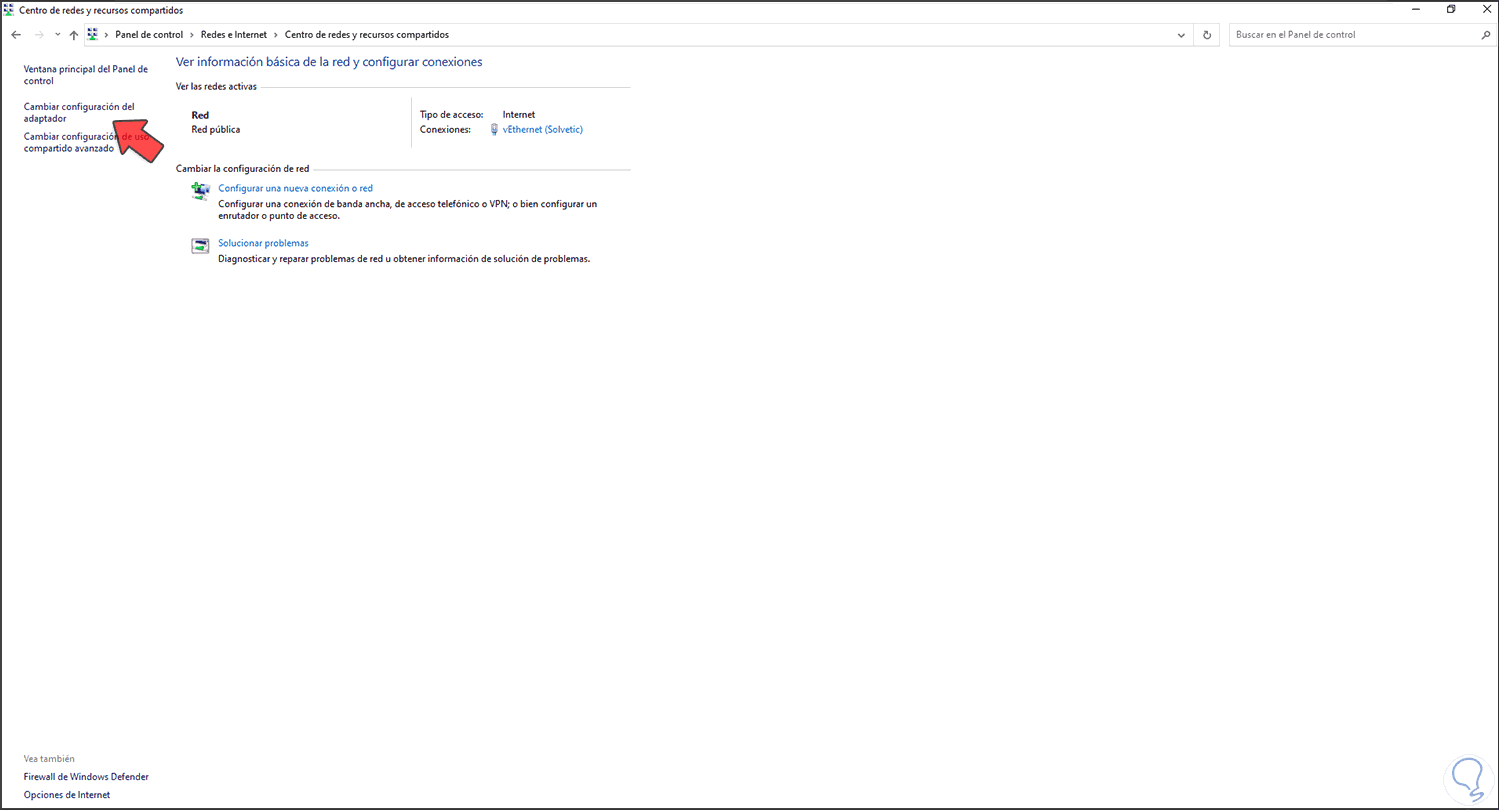 Allí damos clic en "Centro de redes y recursos compartidos" y luego veremos esto:
