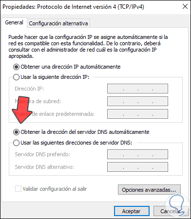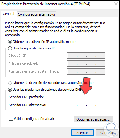 Allí vamos a activar la casilla "Usar las siguientes direcciones de servidor DNS", para ver esto: