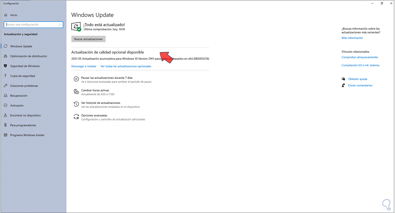 Después de esto accedemos a las actualizaciones de Windows Update para ver su comportamiento: