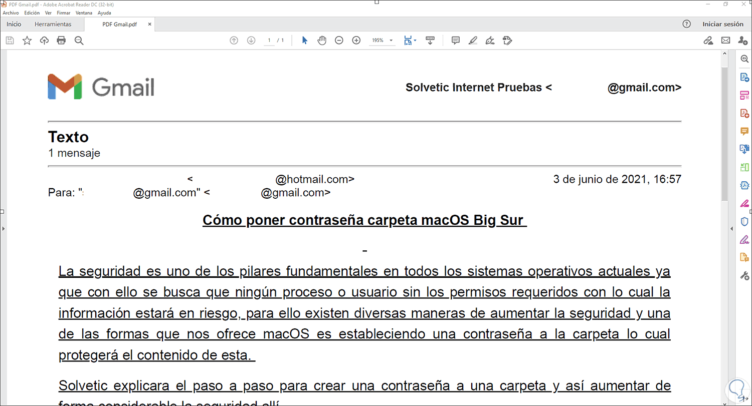 Damos clic en Guardar y después de ello será posible acceder al correo convertido en PDF: