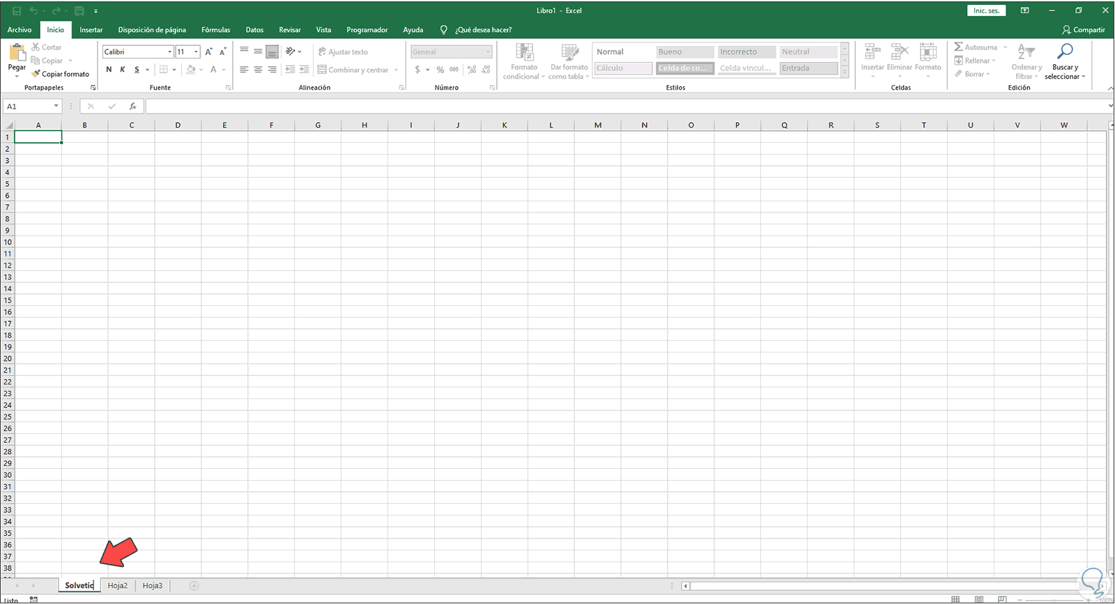 1. Cambiar nombre hoja Excel 2019 desde documento