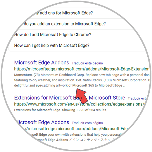 Para esto en una nueva pestaña en Edge buscamos "microsoft edge addons":