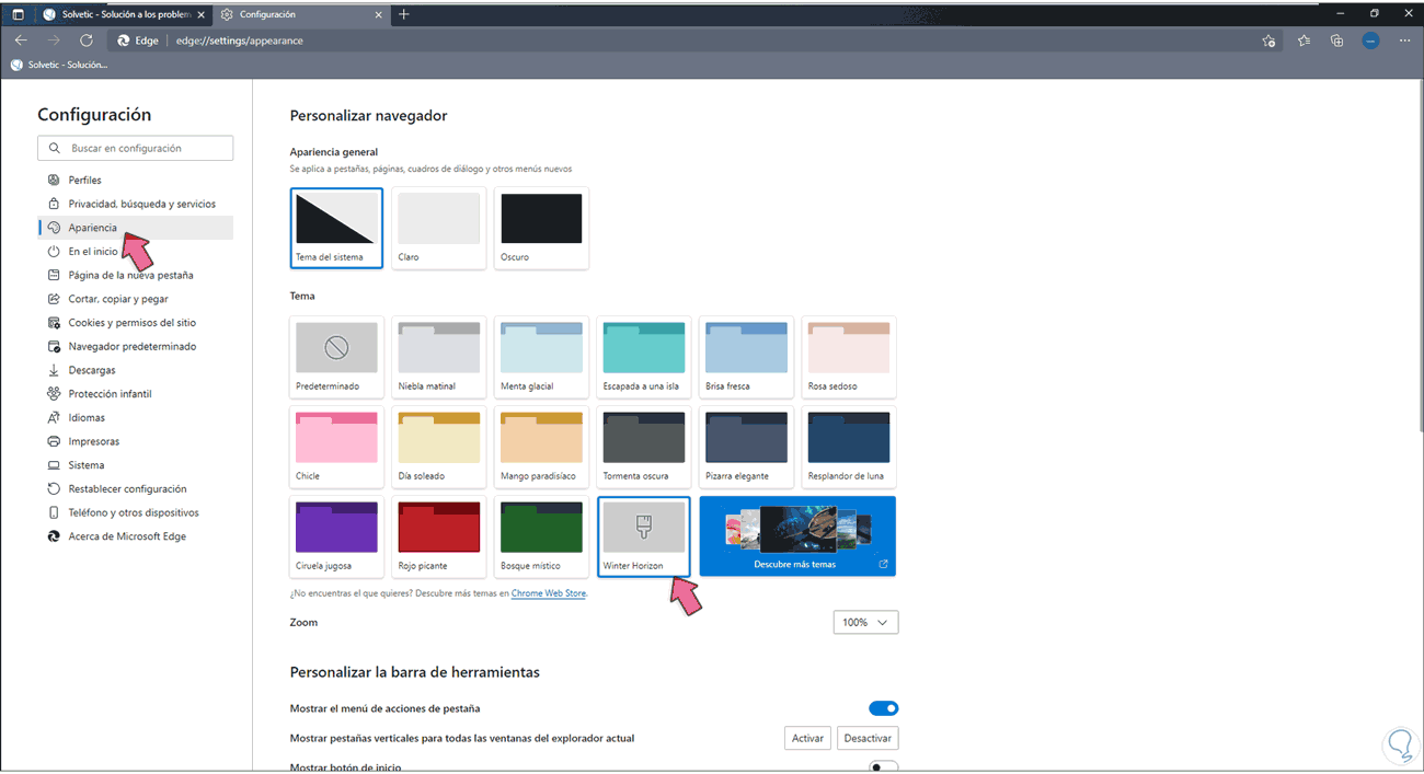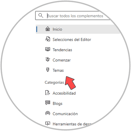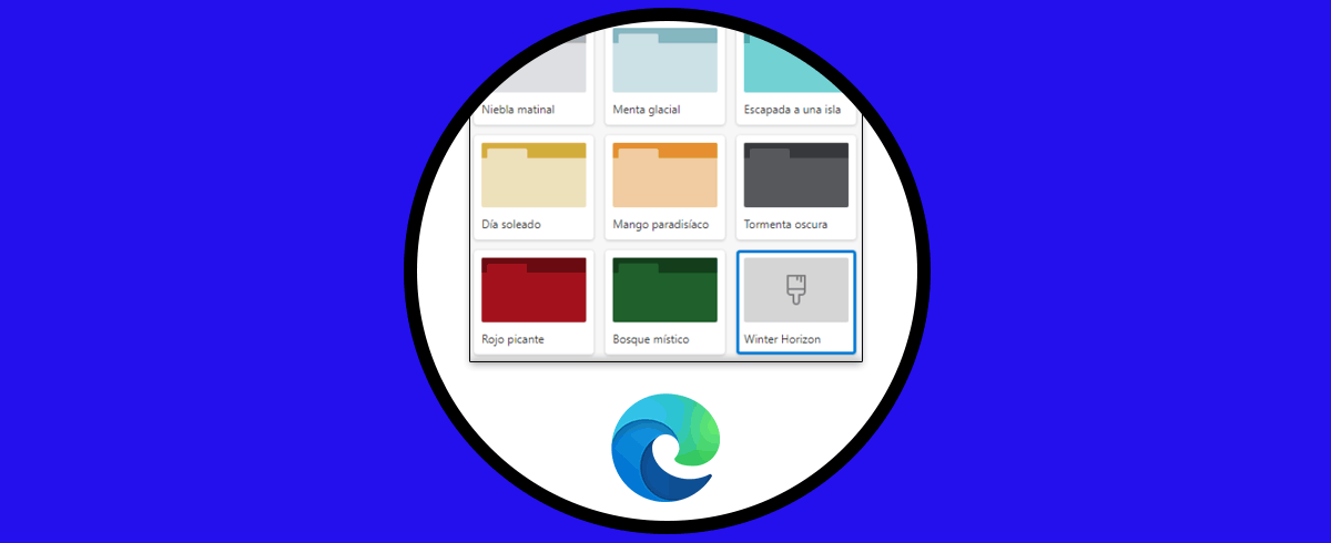 Vamos a la sección "Temas" para ver las diversas opciones disponibles a usar en Edge: