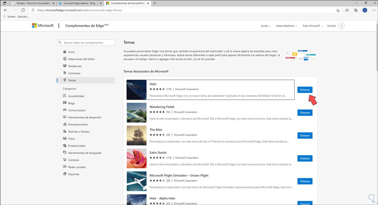 Seleccionamos el tema deseado y damos clic en "Obtener tema":
