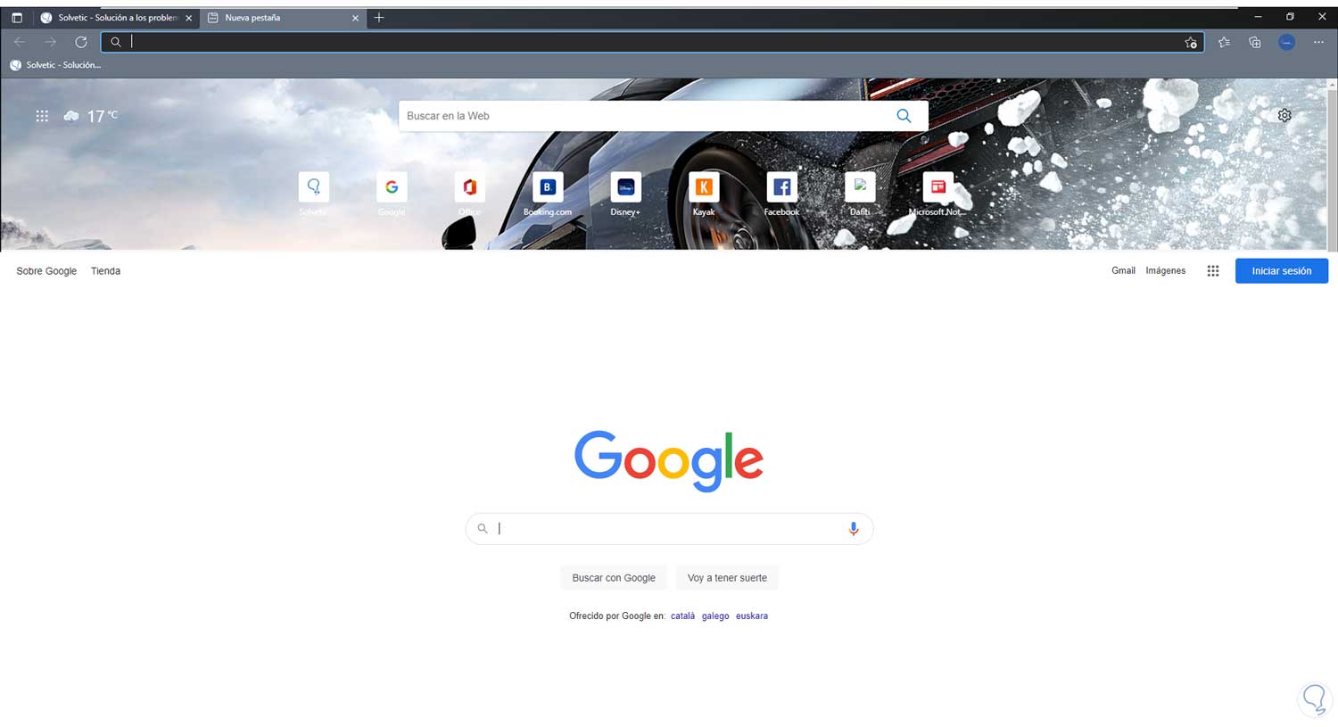 Abrimos una nueva pestaña para ver el tema aplicado en Microsoft Edge: