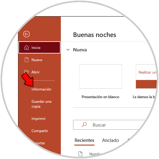 Después de esto, vamos al menú "Archivo - Información":