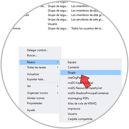 En la ventana desplegada, damos clic derecho en algún lugar libre y seleccionamos la opción "Nuevo - Grupo":