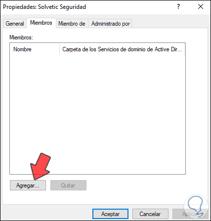 Damos doble clic en el grupo nuevo, y vamos a la pestaña "Miembros" :