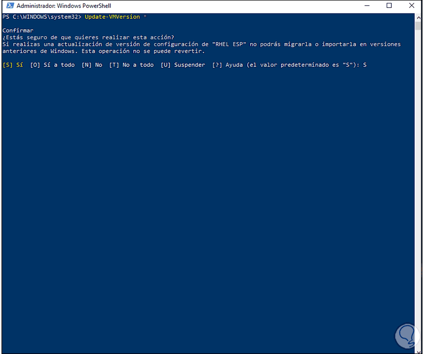 En la consola de PowerShell, vamos a listar la versión de las máquinas virtuales actuales con su versión de uso, ejecutamos: