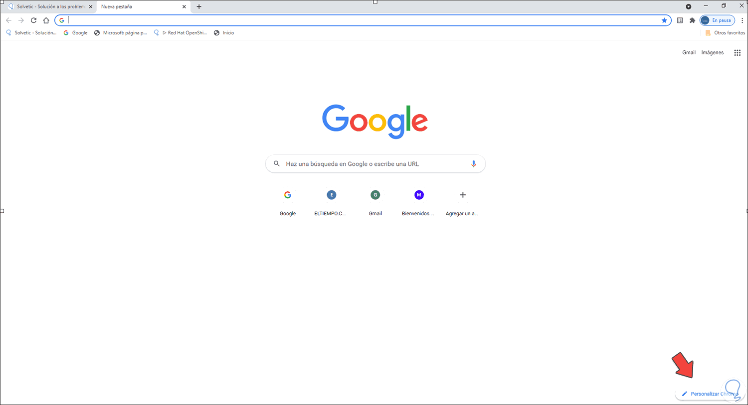 Para lograr esto, abrimos una nueva pestaña de Google Chrome y en la parte inferior damos clic en el botón "Personalizar Chrome":