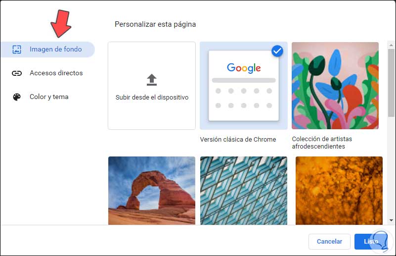 Aplica los cambios dando clic en Listo, la imagen de fondo estará visible en la pestaña de Google Chrome: