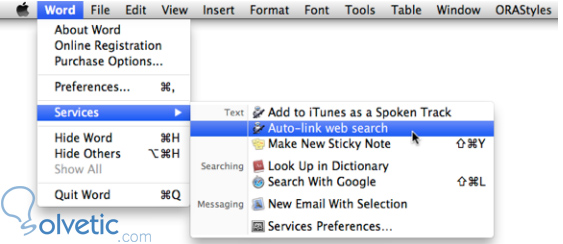 Otra forma más expedita es accediendo al menú contextual al hacer click derecho con nuestro mouse, y ahí eligiendo el sub-menú de servicios, así tendremos una vía más corta y que podemos aplicar de manera más fácil a una selección.