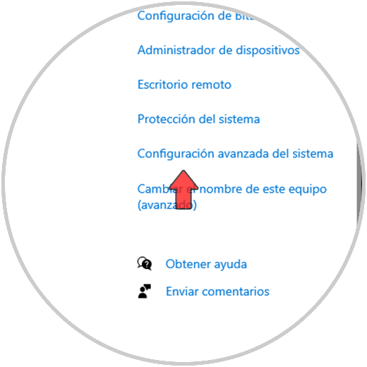 Allí vamos a “Acerca de” y luego damos clic en la línea "Configuración avanzada del sistema":
