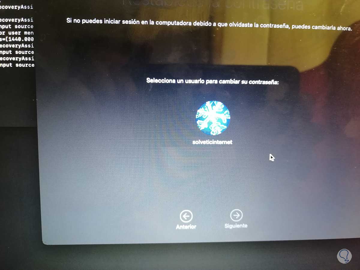 Después de esto seleccionamos a cuál usuario se ha de cambiar la contraseña en macOS. En la siguiente ventana ingresamos la nueva contraseña y algún indicio de esta. Damos clic en Siguiente para completar el proceso: