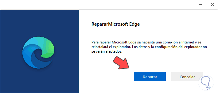 Damos clic en "Reparar" y debemos esperar que Edge sea descargado e instalado en Windows 10 de nuevo, esto no hará perder ninguna configuración ya creada ni complementos instalados: