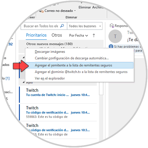 - Agregar el remitente a la lista de remitentes seguros