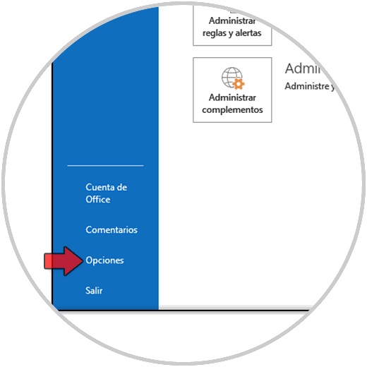 Solvetic ahora te explicara como configurar continuamente el despliegue de las imágenes en Outlook 2019, para esto vamos a "Archivo - Opciones":