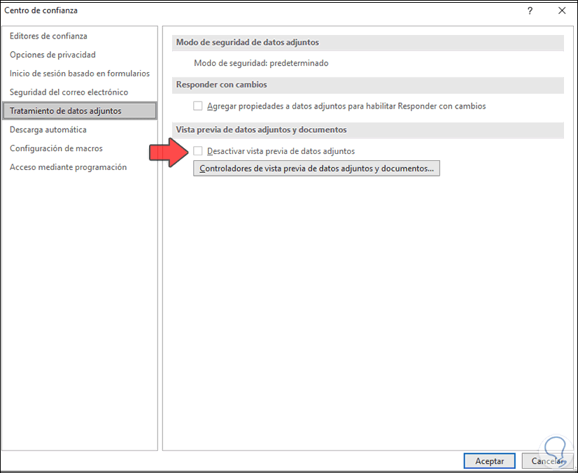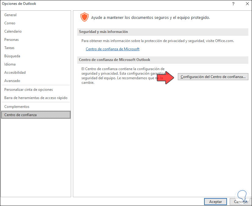 Allí damos clic en "Configuración del Centro de confianza" y luego veremos esto:
