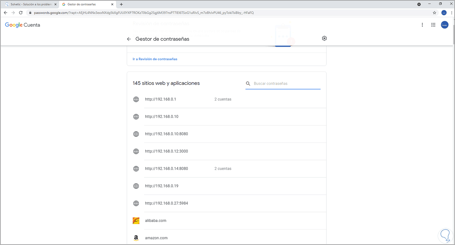 Abrimos Google Chrome, luego vamos al sitio "passwords.google.com":