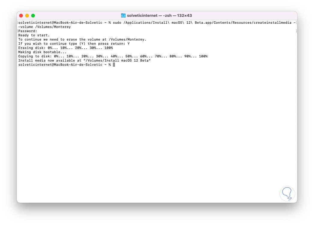 Este es todo el proceso que debemos llevar a cabo para crear nuestro medio de instalación o de arranque de macOS Monterey sin el uso de algún programa adicional.