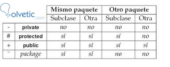 En el siguiente cuadro vemos las diferencias entre los modificadores de visibilidad disponibles en Java:
