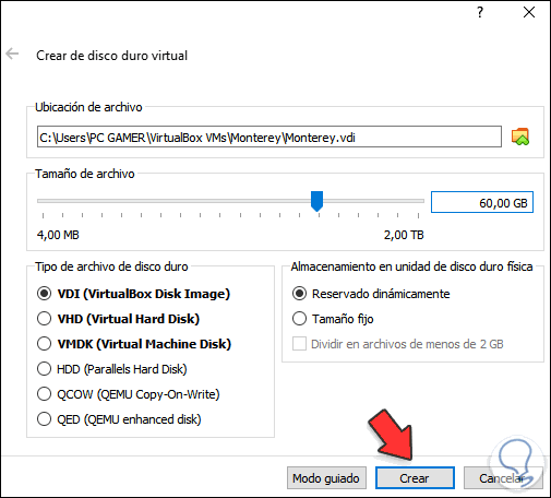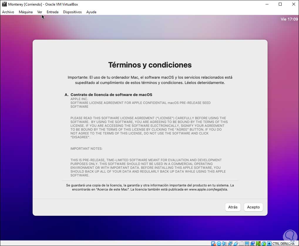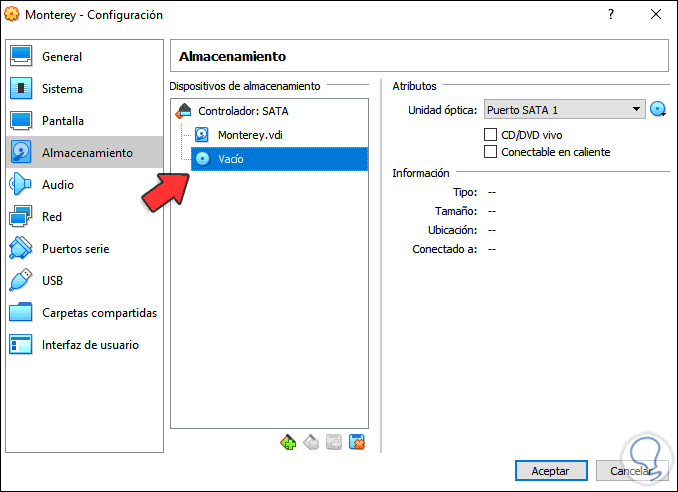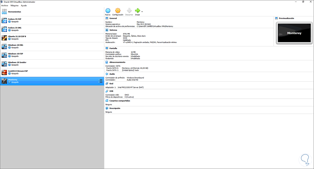 Nota: Monterey debe ser cambiado por el nombre de la máquina virtual.