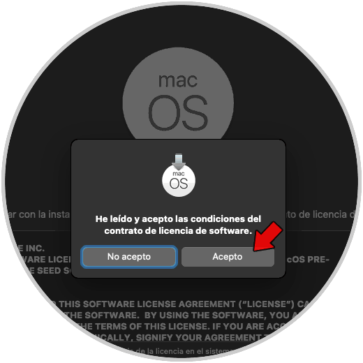 Damos clic en Acepto para confirmar la licencia y se abrirá una ventana emergente para confirmar: