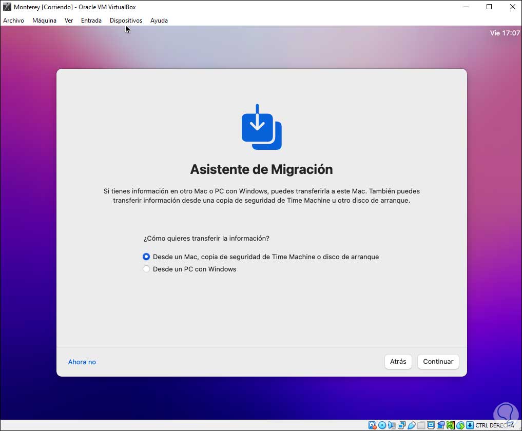 En la siguiente ventana es posible configurar, si lo tenemos, la migración de los datos: