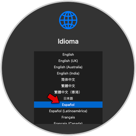 Seleccionamos el idioma de instalación y damos clic en la flecha inferior, veremos el siguiente menú: