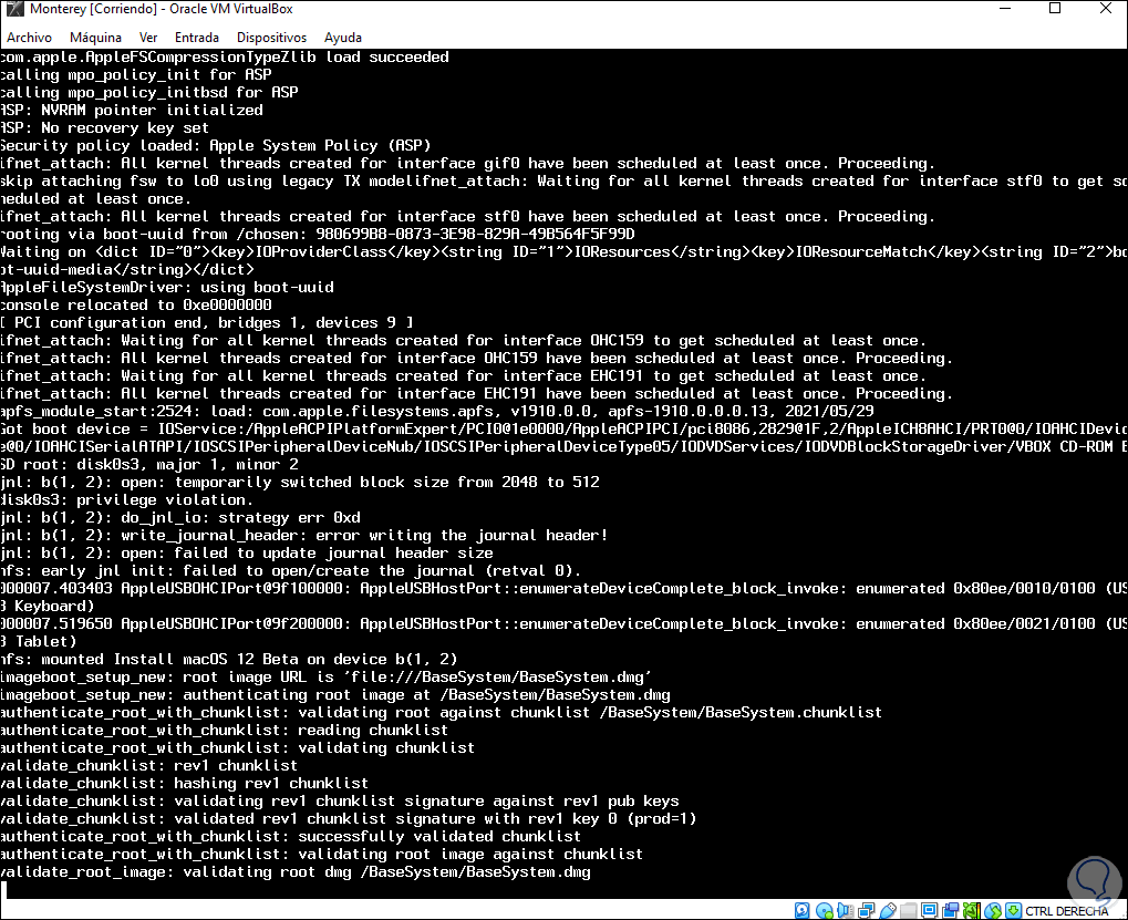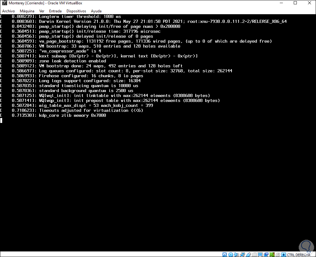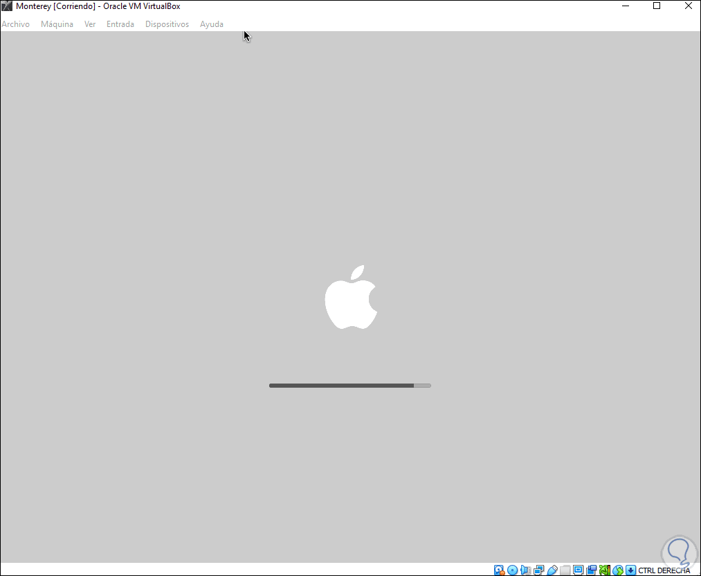 Iniciamos la máquina virtual, se iniciará la carga de procesos de macOS Monterey: