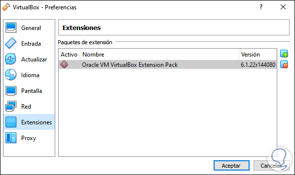 Es importante contar con la última versión tanto de VirtualBox como de las Extension Packs.