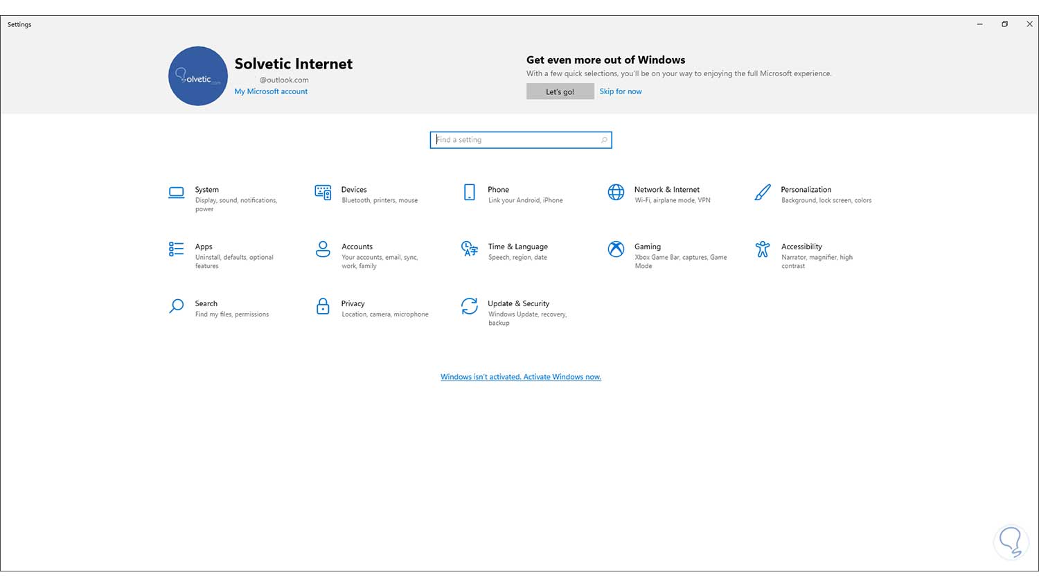 Allí podemos ver que Configuración no difiere mucho de Windows 10:
