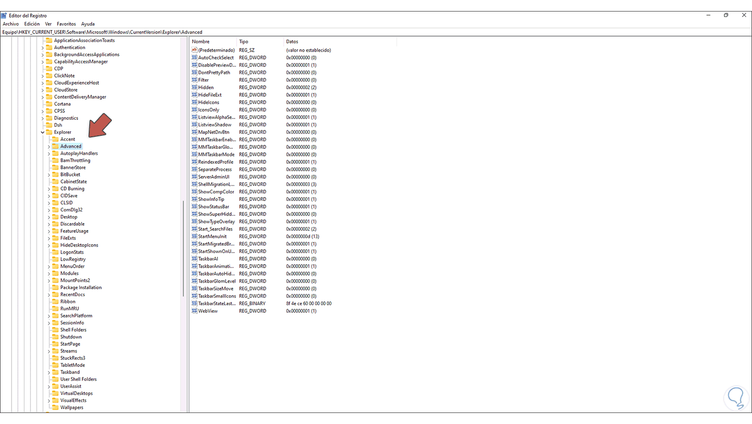 HKEY_CURRENT_USER\Software\Microsoft\Windows\CurrentVersion\Explorer\Advanced\