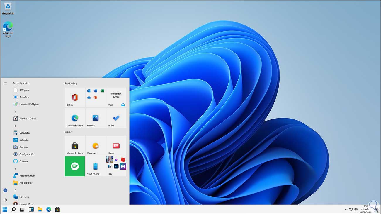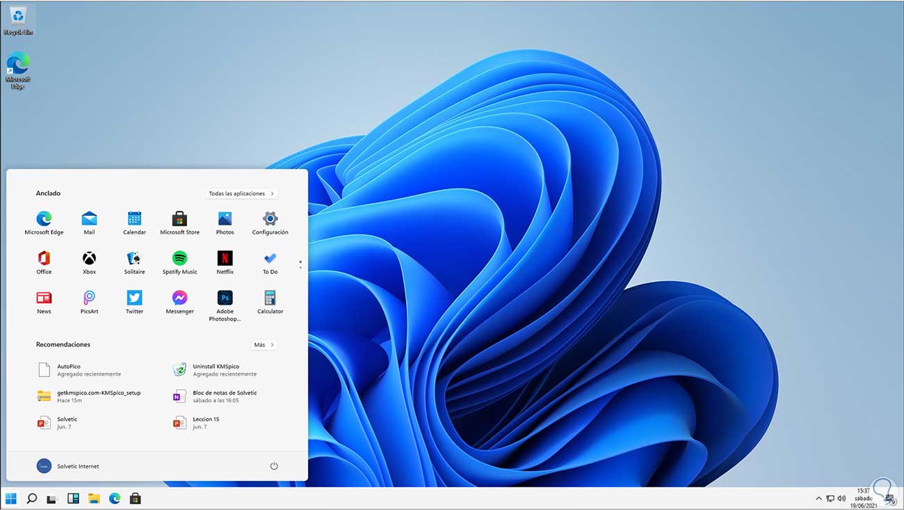 Al iniciar sesión se verá el nuevo menú de Inicio de Windows 11: