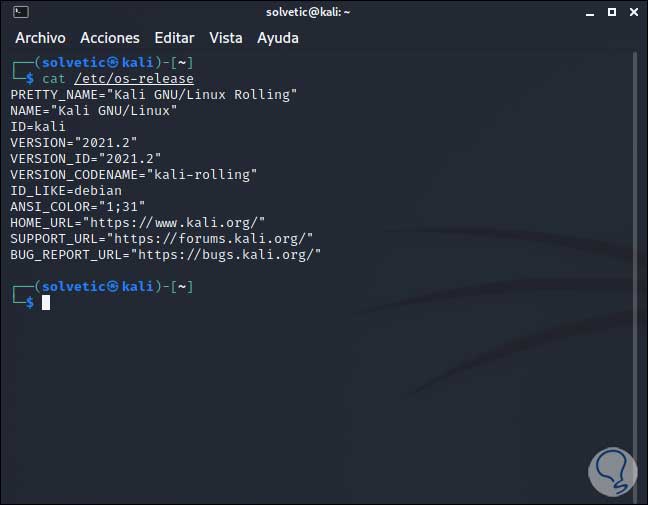 Con este sencillo comando sabremos con exactitud la versión de Kali Linux y conoceremos en qué versión estamos actualmente en Kali Linux ya que a veces lo necesitamos para descargar software concreto asociado a esa versión por temas de compatibilidad.