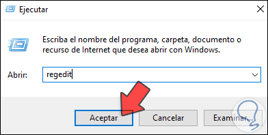 Para usar este método, abrimos Ejecutar e ingresamos "regedit":