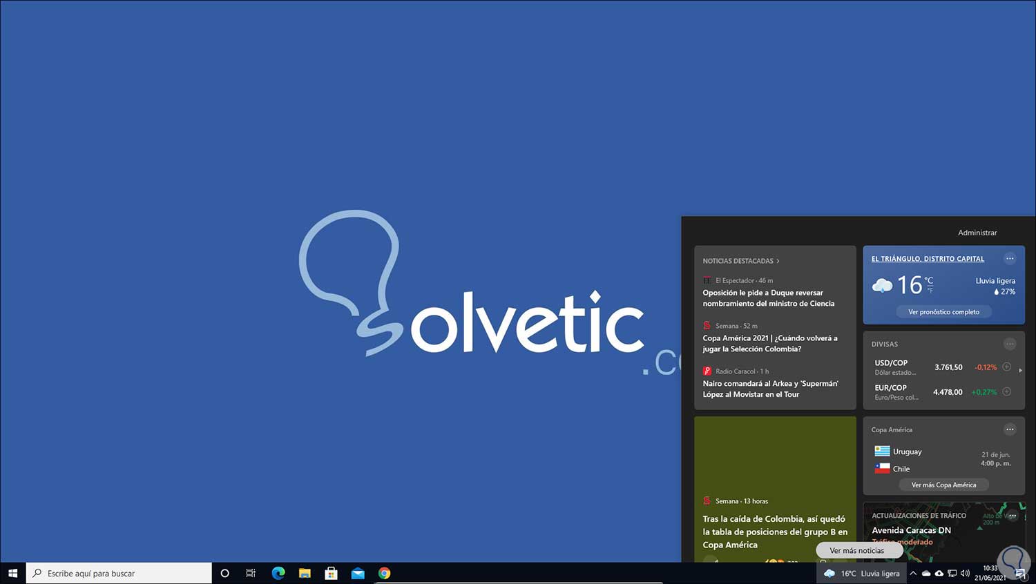 Windows 10 en cada actualización que lanza integra nuevas funciones en el sistema (ya sean en su escritorio o a nivel de aplicaciones) para permitir que el usuario final disponga de las mejores funciones de uso y una de estas novedades es la función Noticias e intereses. Noticias e intereses están ancladas en la barra de tareas y proveen un acceso a detalles e información asociada a nuestros gustos, ubicación y preferencias, esto incluye noticias locales, clima, estado del tráfico, Forex y más.