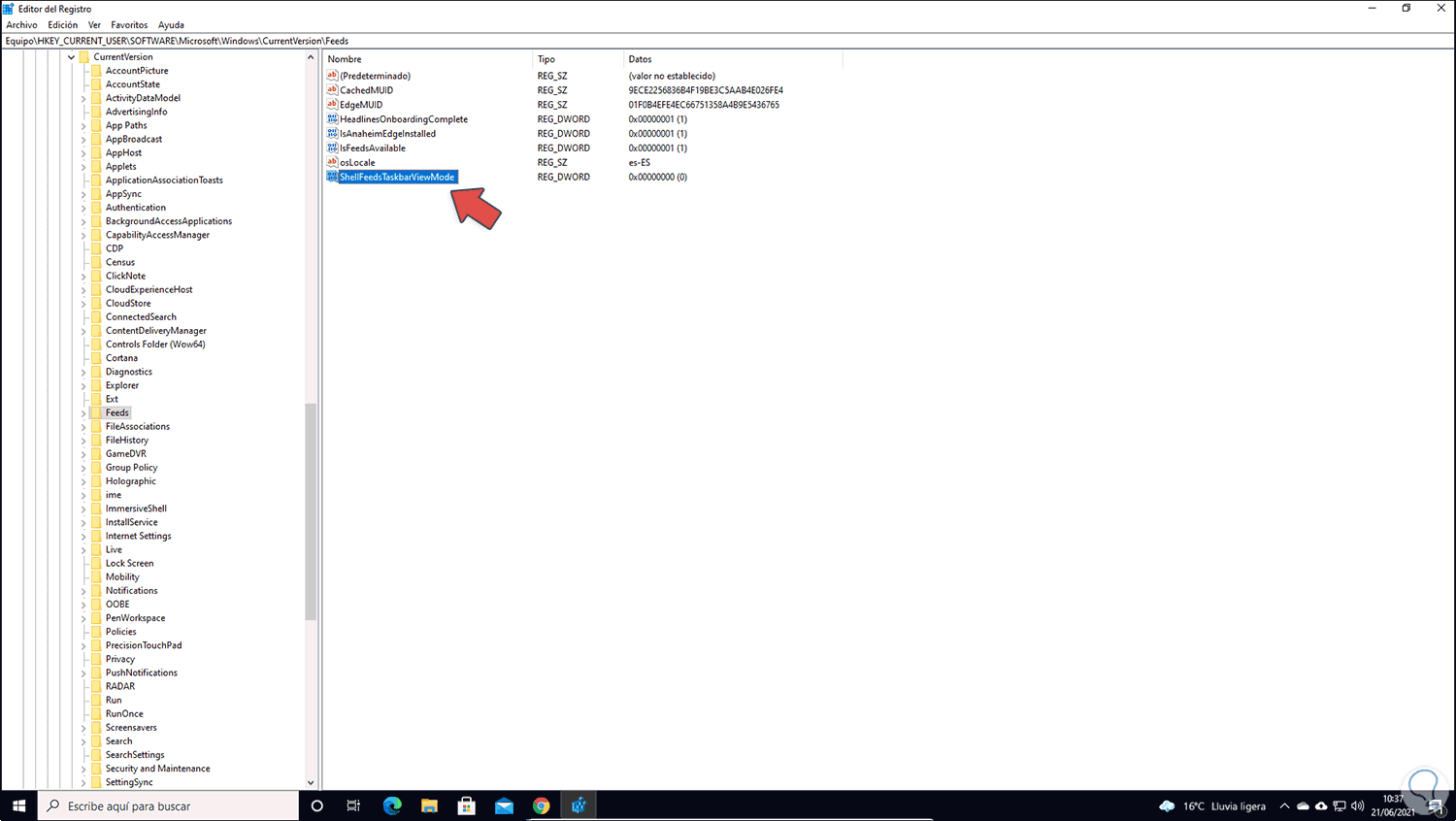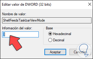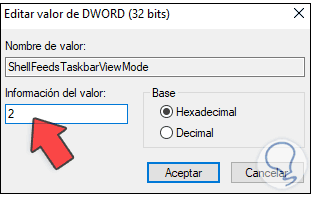 Damos doble clic sobre el valor "ShellFeedsTaskbarViewMode" para ver su estado por defecto: