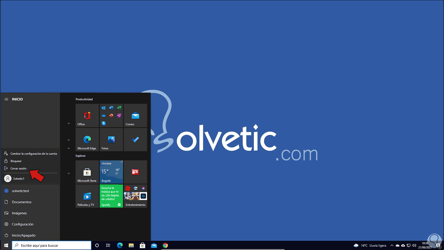 Ahora cerramos sesión para ver que la función Noticias e intereses ha sido desactivada: