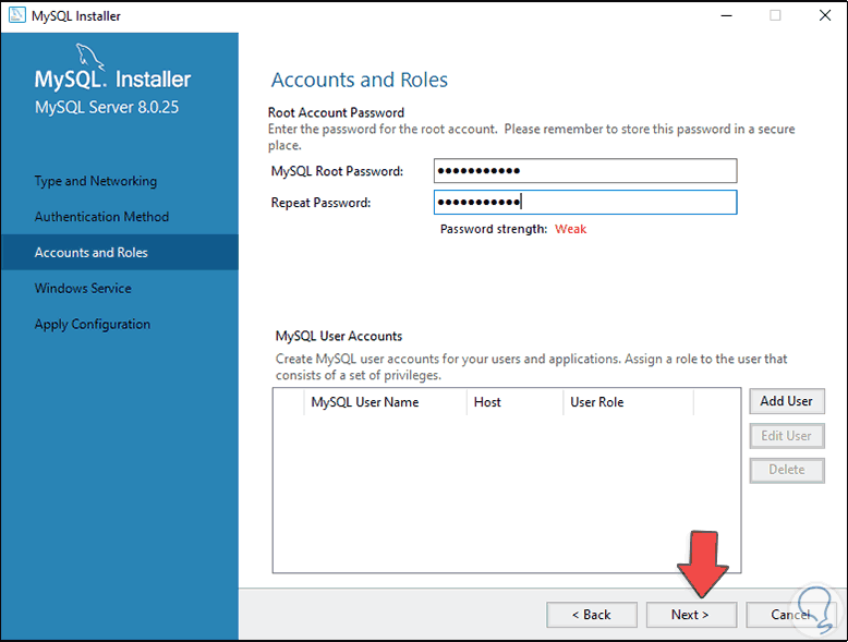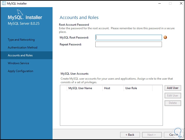 Vamos a asignar la contraseña del usuario root: