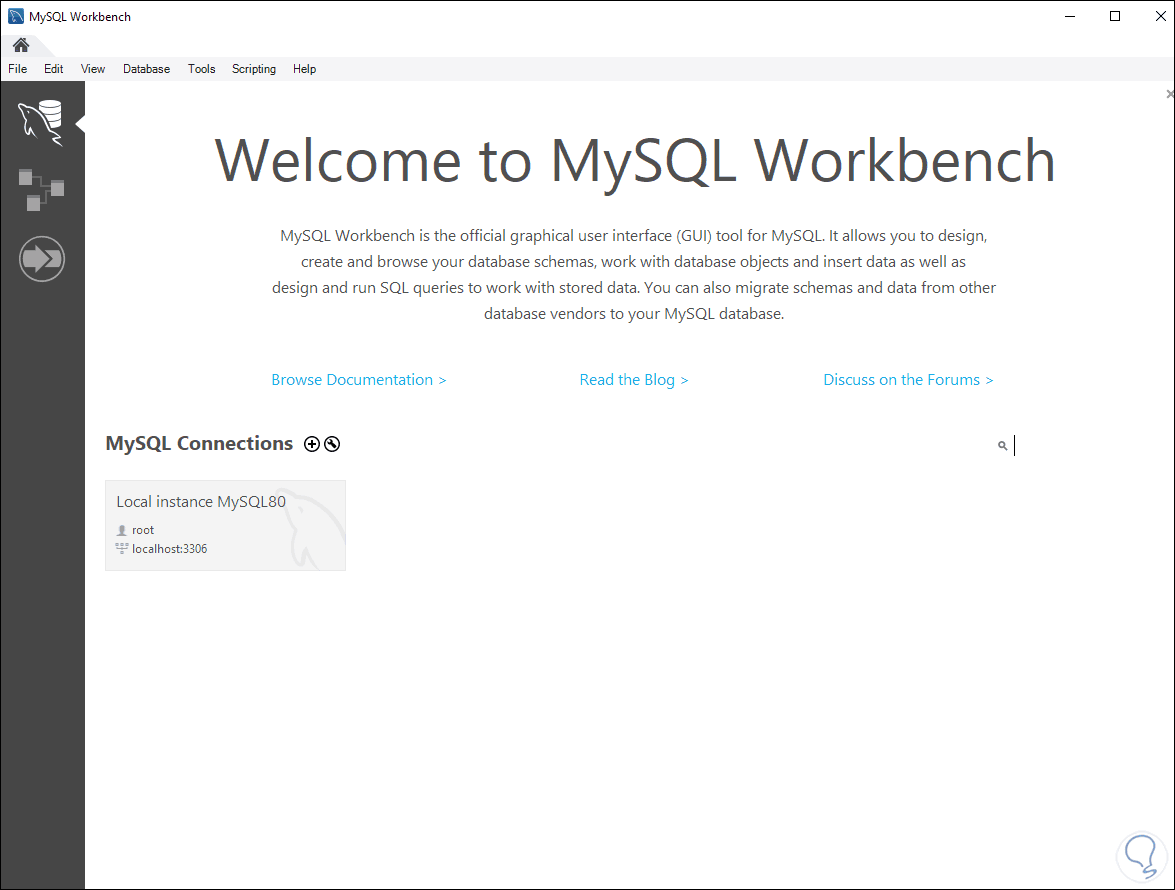 Luego se abrirá la plataforma de MySQL. Salimos de la plataforma.