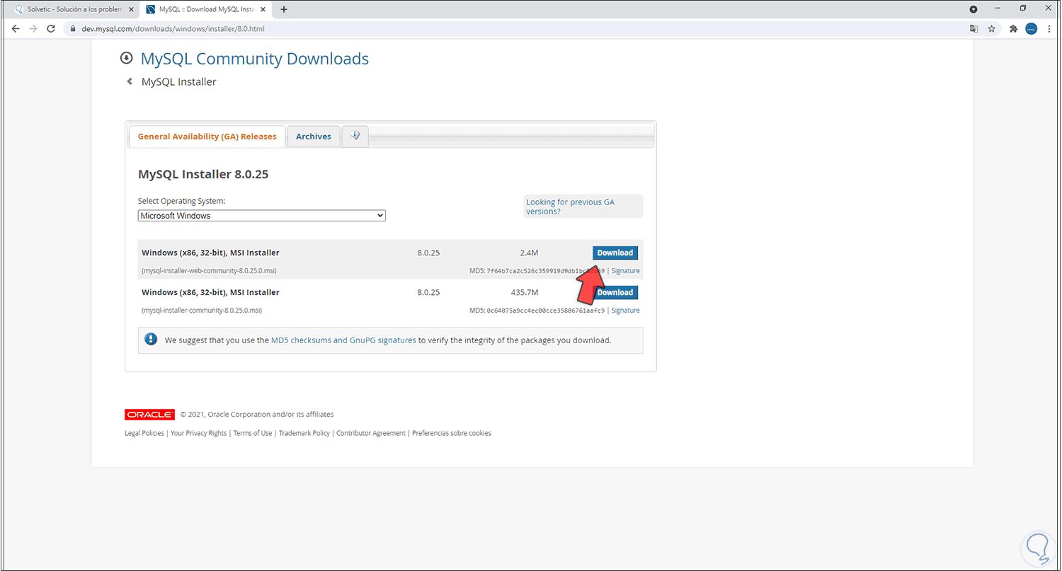 Allí descargamos el instalador deseado: